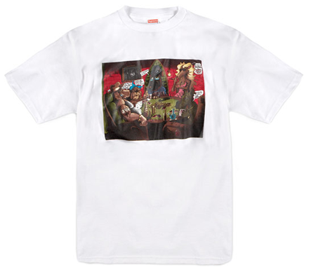 L’artiste de Long Beach (Californie), Joe Cool, connu pour ses illustrations de pochettes d’albums de rap comme, par exemple, Doggy Style de Snoop Doggy Dogg, a collaboré avec Supreme pour la sortie de quatre tees qui sortiront ce 10 mai (le 12 mai au Japon). Le style incomparable du dessinateur des 90’s convient parfaitement à l’esprit de la marque new-yorkaise qui frappe, ici encore, un grand coup!