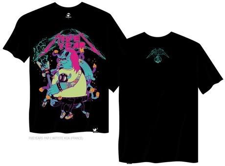 La collection Spring 2008 de FiveYears est enfin dévoilée! Pour ce printemps, la marque française a fait appel à l’artiste français Koa et à l’américain Munk (Upper Playground, etc.) pour réaliser, chacun, un tee. La collection sera entièrement disponible dans les meilleurs shops à partir du 1er avril: Aimecube, BKRW, Artoyz, Dope, Delkoshop, Vibes, Abaka, Loft, Corezone, Supreme à Gap, Landscape, Rice & Beans…