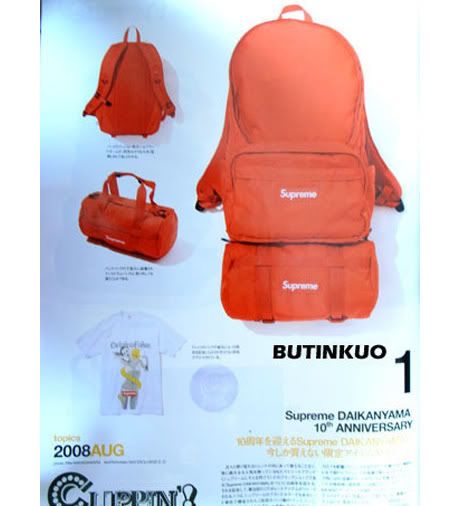 Pour célébrer les 10 ans de la boutique Supreme à Daikanyama à Tokyo, la marque new-yorkaise s’est associée à Porter pour réaliser un magnifique backpack rouge ajustable avec un duffle bag. Un nouveau t-shirt avec Original Fake verra également le jour, avec cette fois un Bendy jaune autour de Kate Moss. Sortie prévue pour le 28 juin au Japon.