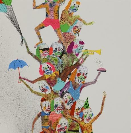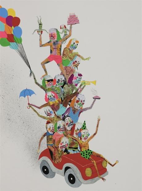 Neck Face présentait samedi dernier sa nouvelle exposition, Cannibal Carnival, à la New Image Art Gallery de Los Angeles! L’artiste new-yorkais y dévoile ses nouvelles œuvres où ses démons sont, pour l’occasion, déguisés en clowns. Neck Face a également peint dans tout l’intérieur de la galerie, et une mini-rampe y trône même dans un coin… Jusqu’au 20 septembre.