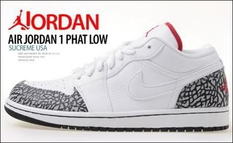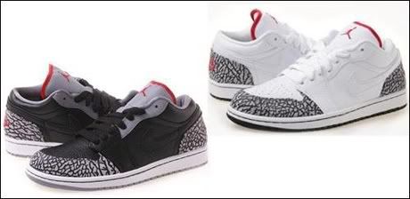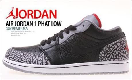 Ce week-end sortiront les premières Air Jordan 1 Low Phat (voir les autres paires ici). Jordan Brand souhaite toucher l’univers du skate et avec sa languette épaisse, le modèle se rapproche des Nike SB Low. Ces deux versions Black et White/Cement annoncent à merveille le retour de l’Air Jordan III Black/Cement prévue pour le mois prochain (voir ici).