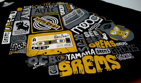 Pour célébrer sa nouvelle exposition solo chez Auguste (voir les photos du vernissage ici), Grems et la boutique parisienne ont réalisé un pack comprenant un t-shirt et un mix CD Ouzzz Bad. Les packs sont numérotés (100 exemplaires uniquement) et signés par l’artiste. Disponible dès maintenant chez Auguste (10, rue Saint Sabin – Paris).
