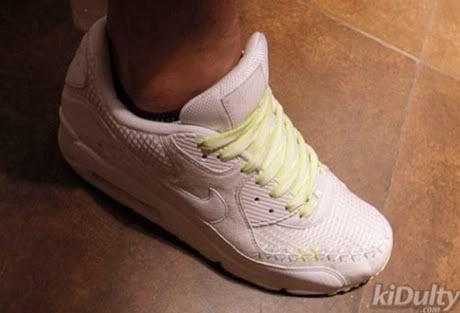 Après l’Air Force One réservée uniquement aux friends & family de Kaws (voir les photos ici), quelques images d’une nouvelle collaboration entre Nike et l’artiste viennent de surgir! Il s’agit d’une Air Max 90 blanche où la signature « X » de Kaws apparaît en neon sur les coutures et sur les lacelocks de la paire. Pour le moment, les photos sont issues du sample et plus d’infos seront, on l’espère, prochainement disponibles…