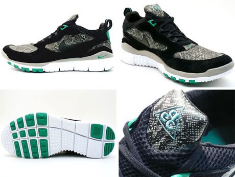 Voici deux nouvelles paires de la récente hybride de Nike, la Wildwood 90 Free Trail (voir les autres paires sorties précédemment ici). La paire, habile mélange des trois modèles (Wilwood, Air Max 90 et Free Trail) est ultra-légère et est réalisée dans des matériaux ACG, ce qui la rend particulièrement résistante. Ces deux nouvelles versions (black suede/brown et white leather/silver) qui viennent de sortir sur le marché japonais, comportent un très beau snakeskin print qui rappelle celui récemment utilisé sur les Air Max Light.