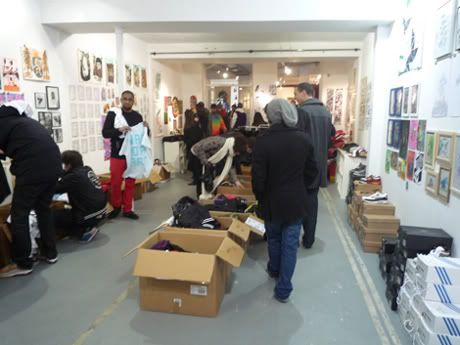 Voici quelques photos de la braderie organisée depuis aujourd’hui par Black Rainbow dans un pop up shop au 38 rue Quincampoix à Paris, chez L’Issue Galerie. Vous avez jusqu’à lundi prochain pour vous y rendre.