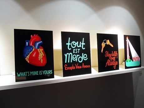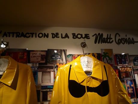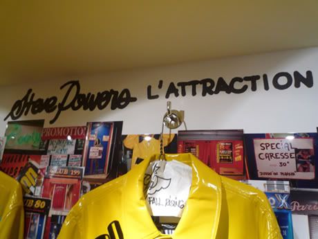 Steve Powers (ESPO) présente, depuis ce soir chez Colette, rien de moins que deux nouvelles expositions! A true provider is good to find se compose de nouvelles peintures produites pour l’occasion. Certaines sont issues de toiles un peu plus anciennes, traduites en français pour un résultat des plus étonnant. Pour L’attraction de la boue (qu’il partage avec Matt Goias), ESPO a réalisé de nouveaux raincoats, projet qu’il avait commencé il y a quelques années déjà, dans les rues de New York. Jusqu’au 3 janvier 2009.