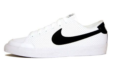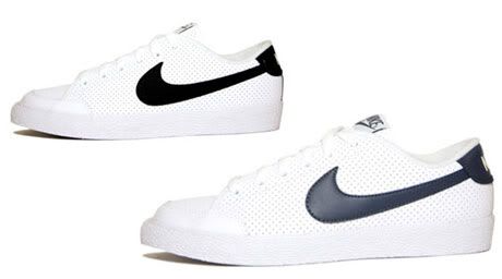 Le mois prochain, Nike sortira une nouvelle paire de Court Low en cuir blanc perforé. La paire reste classique et deux coloris sont prévus sur le swoosh: noir et bleu.