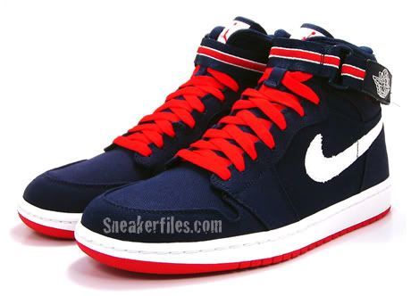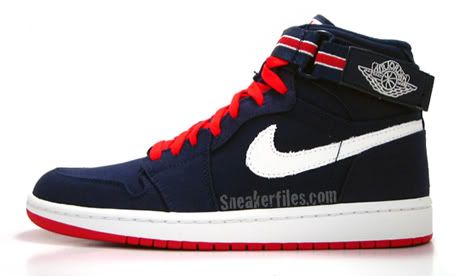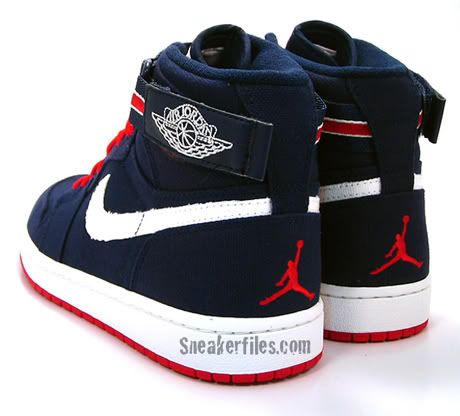 Jordan Brand vient de sortir une nouvelle version de l’Air Jordan 1 High Strap en toile bleue marine. Les lacets varsity red offrent un contaste intéressant que l’on retrouve également au niveau du strap et de la semelle.