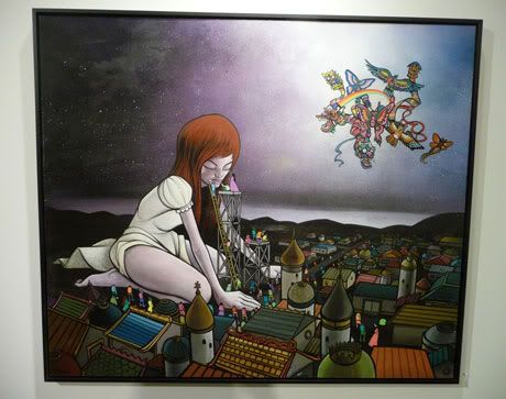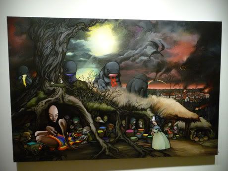 Samedi dernier avait lieu, dans la galerie Subliminal Projects de Los Angeles, le vernissage de la nouvelle exposition solo de Sam Flores où ce dernier explore le thème de la lutte entre la lumière et l’obscurité. Les œuvres de l’artiste de San Francisco sont donc nettement plus sombres que d’habitude et ses personnages aux longues mains semblent plus que jamais empreints d’une profonde spiritualité et d’un mysticisme étrange. Jusqu’au 30 mai.