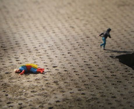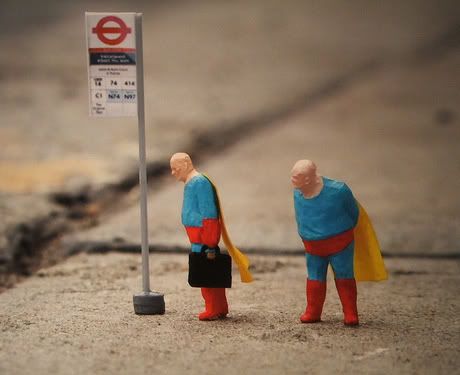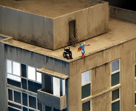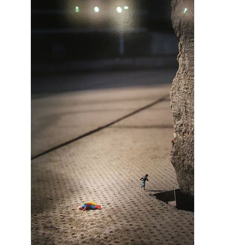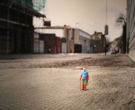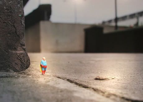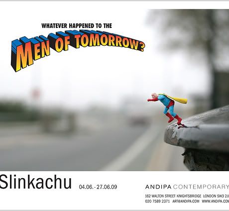 Slinkachu expose depuis mercredi soir à la galerie londonienne Andipa Contemporary. Whatever Happened to the Men of Tomorrow? regroupe les nouvelles photographies des mini-installations urbaines créées par l’artiste britannique. Le travail de Slinkachu commence en 2006 quand il installe de minuscules personnages dans l’espace urbain de Londres, créant de véritables petites mises en scènes à la fois drôles et poétiques. En réalisant des photos des installations, l’artiste pénètre dans l’univers des galeries. Avec cette nouvelle exposition solo, Slinkachu s’offre pour protagoniste un Superman déchu, âgé et obèse, et aborde ainsi les thèmes qui lui sont chers: la solitude et les désillusions. Merci à Butterfly. Jusqu’au 27 juin.