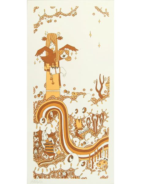 L’artiste britannique Pete Fowler vient de sortir deux nouvelles sérigraphies (76 x 36cm) aux éditions Pictures On Walls. Gwyn et Gwynneth sont éditées à 150 exemplaires, signées et numérotées par l’artiste. Une version pink des sérigraphies (ci-dessus) est également disponible, mais nettement plus limitée (40 exemplaires seulement).