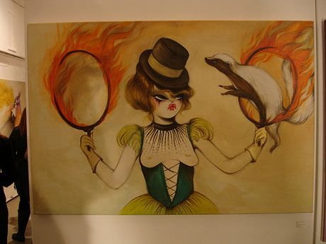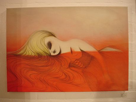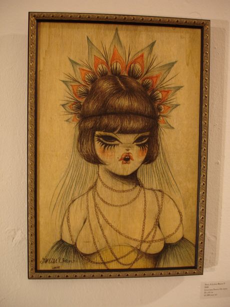 La galerie londonienne StolenSpace accueille depuis hier soir la nouvelle exposition solo de Miss Van, Lovestain. C’est de loin sa plus importante exposition à ce jour. L’artiste toulousaine continue de peindre ses personnages, plus sensuels et mystiques que jamais. Présentant ses nouvelles esquisses, dessins et peintures, Miss Van varie les supports, passant du papier au bois et même à la peau tannée ou à l’installation. L’érotisme chic et sombre est omniprésent: à demi-nues, masquées, en plein rites… On savoure cette incroyable et étrange sensualité sur chaque œuvre… Jusqu’au 18 octobre. Merci à risky20.