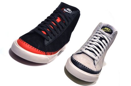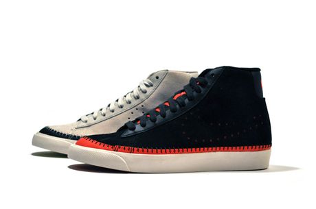 NIKE SPORTSWEAR – F/W ’09 – AIR BLAZER MID ND Footwear // octobre 21st, 2009 Nike vient de sortir deux nouvelles Air Blazer Mid ND (Bone/Navy et Black/Red). Les paires sont réalisées en suede avec un swoosh perforé et des coutures apparentes au niveau de la semelle. Source: Standard