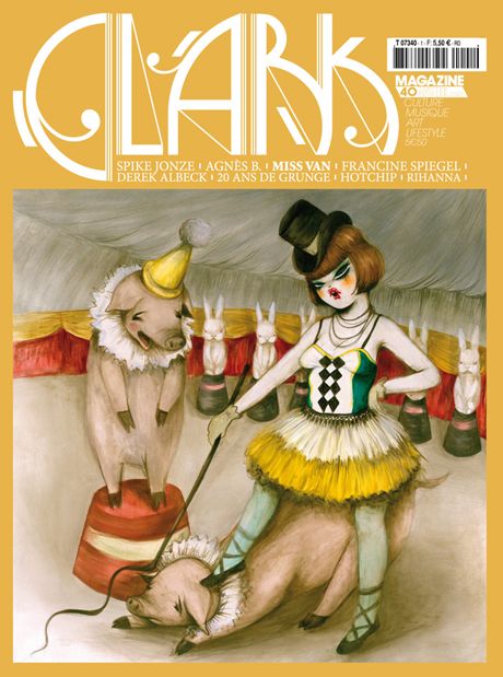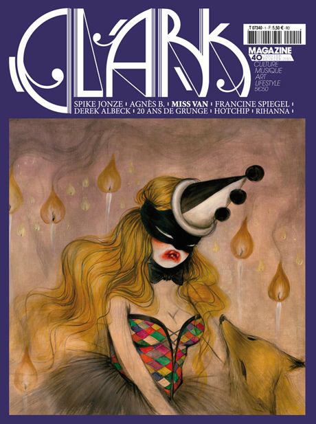Le 40ème numéro du magazine français Clark vient de sortir. Ce numéro est proposé avec trois couvertures au choix, toutes réalisées par Miss Van. Vous pourrez retrouver à l’intérieur une interview fleuve avec l’artiste. On y trouvera également des articles sur Spike Jonze, Agnès B., Francine Spiegel, Dereck Albeck et bien d’autres encore.