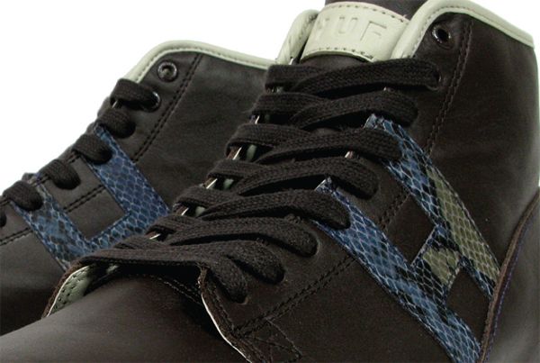 HUF nous dévoile aujourd’hui le Snake Pack issu de sa première collection footwear pour l’automne 2010. On retrouve trois paires en cuir avec un H sur le côté en snake skin: la Hupper (ci-dessus), la Choice (en cuir blanc) et la Bridge (en cuir noir).