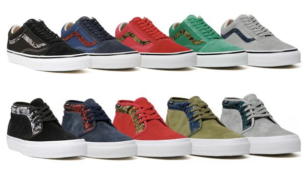 Supreme présente aujourd’hui sa nouvelle collaboration avec Vans sur une paire de Chukka et une paire d’Old Skool. Les deux modèles, déclinés en plusieurs coloris, ont été réalisés en daim avec quelques détails en snake skin. La collection sera disponible à partir du jeudi 8 avril.