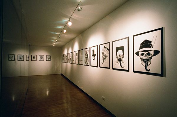 A l’occasion du projet Tied Together de Nike et (Red), Giorgio Di Salvo, designer de la marque italienne Vngrd, a présenté mardi dernier deux années de travaux lors d’une exposition éclair de 24 heures intitulée Black & White and Red Snakes. On y découvre ses illustrations exclusivement réalisées en noir et blanc, où ses symboles et son iconographie témoignent de la vision sombre et cynique de l’artiste italien.