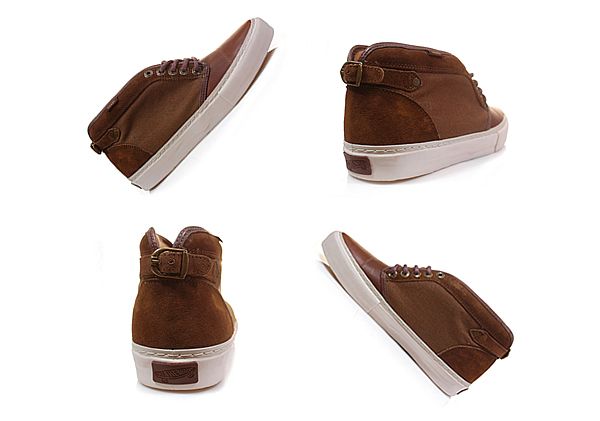 On découvre aujourd’hui la version brown de la Chukka Buckleback LX réalisée par Vans Vault pour sa collection Fall 2010. La paire utilise du cuir, de la toile ainsi que du suède.