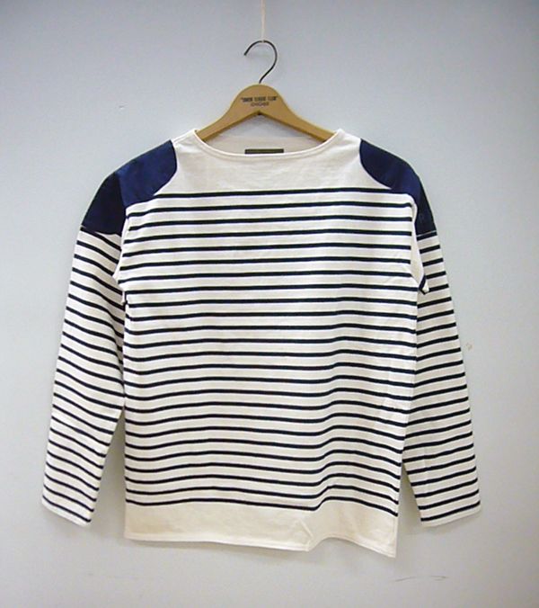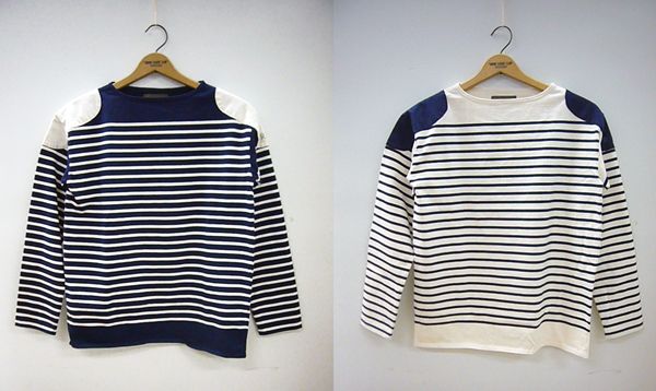 Cette saison, le designer britannique Nigel Cabourn rend hommage aux anciennes tenues typiques des marins du Pays Basque avec ce nouveau tee-shirt à rayures, décliné en deux coloris. Fabriqué au Japon, le tee-shirt possède des appliques en toile sur les épaules. Retrouvez le reste de la nouvelle collection ici.