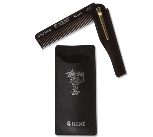 Pour sa nouvelle collection Spring/Summer 2012, Stussy Deluxe s’est associé au label britannique fondé en 1777 Kent pour réaliser un très beau peigne de poche pliable. Ce dernier est décliné en deux coloris et est vendu avec un étui en cuir. Disponible dès maintenant dans les chapter stores de la marque.