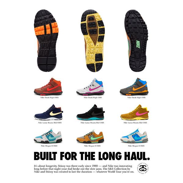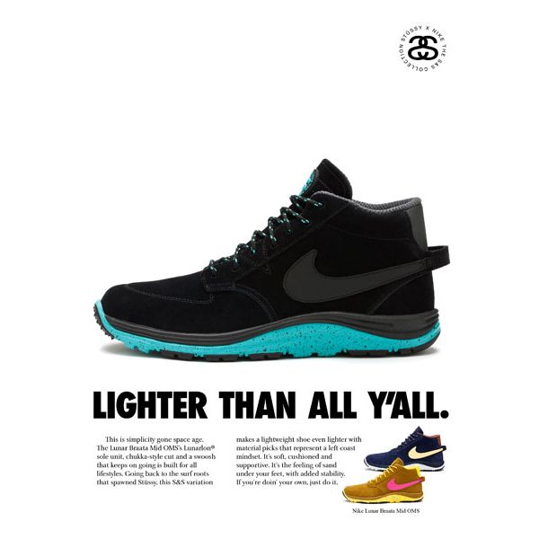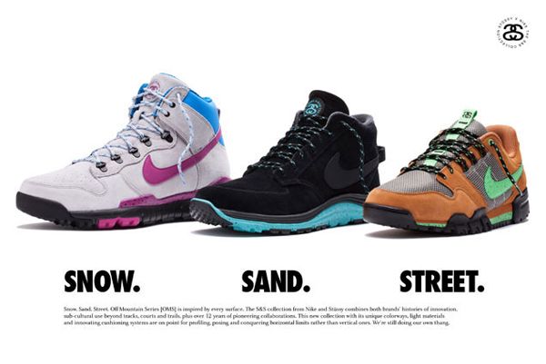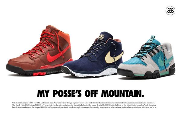 On découvre aujourd’hui la nouvelle collaboration entre Stussy et Nike pour l’automne/hiver 2012: la S&S Collection (snow, sand, street). Prévue pour le 13 octobre, cette dernière se compose de trois nouveaux modèles (Dunk Hi OMS, Lunar Braata Mid OMS, Mogan II OMS) déclinés en trois coloris.