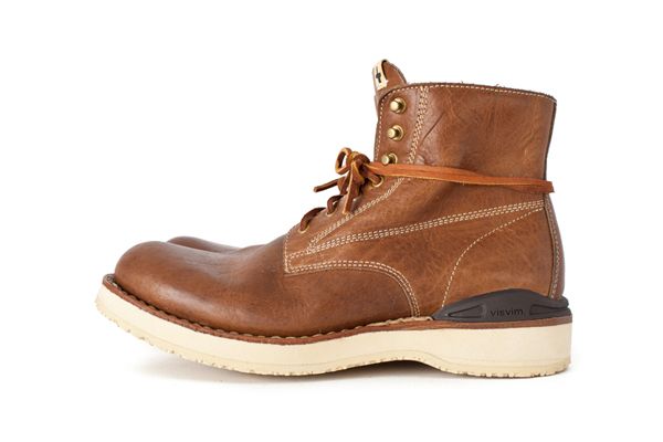 Cet été, Visvim sort une nouvelle version Folk de sa fameuse Virgil Boot. La paire est cette fois conçue en cuir premium de bison (extérieur) et de cheval (intérieur) en provenance de la tannerie américaine Horween. Montée sur une semelle Vibram cousue à la main, elle est déclinée en quatre coloris: black, brown, light brown, sand et clay. Disponible dès maintenant au Japon.