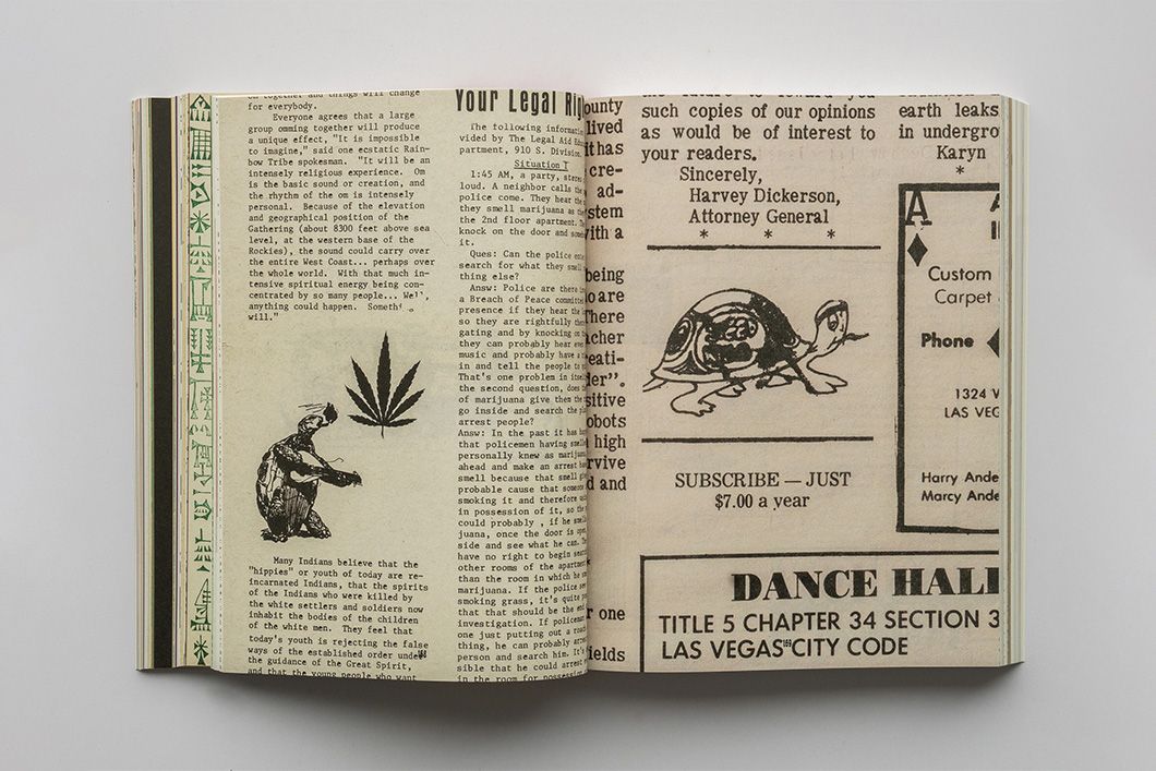 Les éditions suisses Edition Patrick Frey viennent de publier le livre Heads Together – Weed and the Underground Press Syndicate 1965-1973. Le soulèvement de la jeunesse, aujourd’hui simplement appelé « les années 60 », a été alimenté par l’un des plus grands booms de l’histoire de l’édition. L’Underground Press Syndicate (UPS) a commencé comme une confédération de cinq journaux en 1966, et en quelques années, il a fédéré plus de 500 titres à travers le monde, touchant des millions de lecteurs. Ils se sont « répandus comme de la mauvaise herbe », a déclaré Tom Forcade, directeur de l’UPS, marchand de mauvaises herbes et futur fondateur de la revue High Times. La métaphore était appropriée : l’UPS a impulsé le mouvement de légalisation, et l’herbe est devenue son totem. L’herbe était si répandue qu’elle est devenue un prétexte utile pour les agences gouvernementales pour sévir contre l’UPS. La weed est devenue l’emblème des groupes d’activistes, et a ajouté une touche de style aux titres de l’UPS. Elle a envahi les pages de l’UPS, les trous dans le texte étant remplis d’illustrations ponctuelles inspirées par la marijuana. Heads Together rassemble ces dessins, mettant en lumière des noms moins connus dans le canon de l’art du stoner, et beaucoup de ceux qui n’étaient pas des noms du tout, car aucune signature n’était attachée. Il compile également des guides de culture de l’herbe de l’époque, qui étaient traités comme de la contrebande par la CIA. Les papiers à rouler psychédéliques à vocation militante sont également présentés. Alors que la légalisation de la marijuana progresse rapidement aux États-Unis et ailleurs, son statut autrefois sulfureux prend un relief étrange. Les profiteurs du marché de l’herbe d’aujourd’hui ne reflètent pas ceux qui se sont battus pour la légalisation, ni les populations noires et latinos qui ont été stratégiquement criminalisées pour l’herbe bien avant que les hippies ne soient pris pour cible, et bien après. La production graphique rassemblée dans ce livre témoigne d’une époque où le joint était fumé avec optimisme, comme quelque chose de potentiellement bon pour la société et les gens, capable d’activer une transformation profonde face à des forces corrompues et puissantes. L’ouvrage de 566 pages est maintenant disponible sur la boutique en ligne des éditions Edition Patrick Frey.