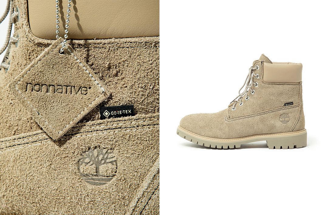 Après les Field Boots sorties il y a peu (voir ici), nonnative (voir son dernier lookbook ici) présente aujourd’hui sa seconde collaboration avec Timberland pour cette fin d’année. Le modèle emblématique de la marque, la 6-inch Premium Boot est conçue à cette occasion en suède premium avec une membrane GORE-TEX et une doublure en PrimaLoft Gold Insulation Eco, un nouveau matériau aussi doux et léger qu’une plume, qui offre une chaleur et une respirabilité excellentes, tout en étant respectueux de l’environnement. La semelle est quand à elle signée Vibram. La paire sera mise en vente le 4 novembre.
