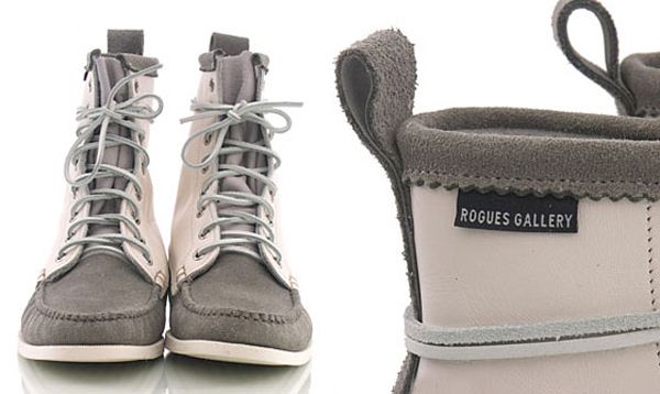 Voici la nouvelle version de la Marlin Deck Boot de la marque américaine Rogues Gallery pour la saison Spring/Summer 2010. La paire est réalisée en cuir et en suede avec des coutures apparentes et des lacets en cuir.
